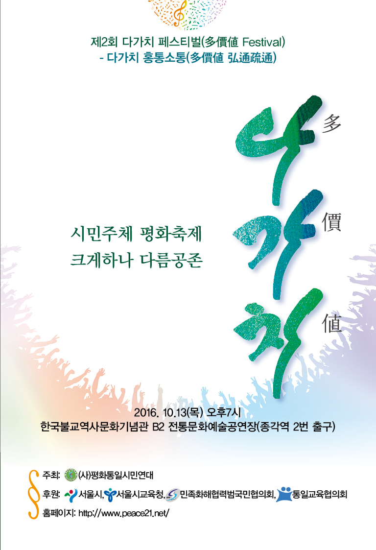 오후7:00 평화통일시민연대/제2회 다가치 페스티벌/조계종 전통문화예술공연장