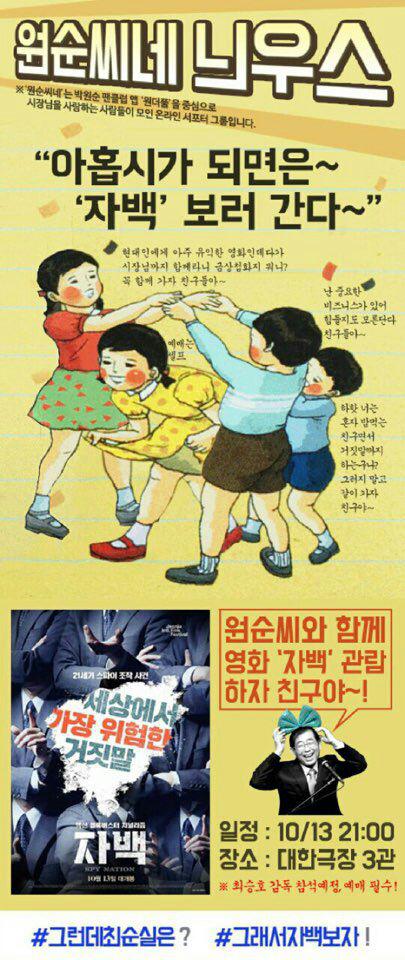 오후9:00 원순씨와 함께 하는 영화 '자백' 관람회/대한극장 3관