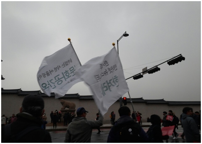 그런 의미에서 지난 다섯 차례에 걸친 집회에서 <한겨레 온>과 <문화공간 온>의 깃발은 일부분 긍정적인 기여를 했다고 생각한다. 개별적으로 참가한 집회자들이 우리 깃발을 보고는 "어? 한겨레네?  우리도 이 깃발 따라가도 돼요?  지나가다 보면 옆에서  " 한겨레도 참가했네? " 수군대는 소리가 자주 들렸다.