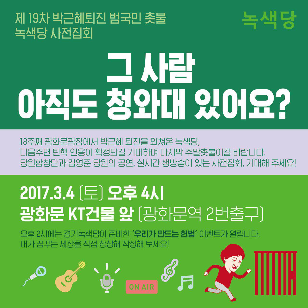 오후4:00 녹색당 사전집회/그사람 아직도 청와대 있어요?/광화문 KT건물 앞