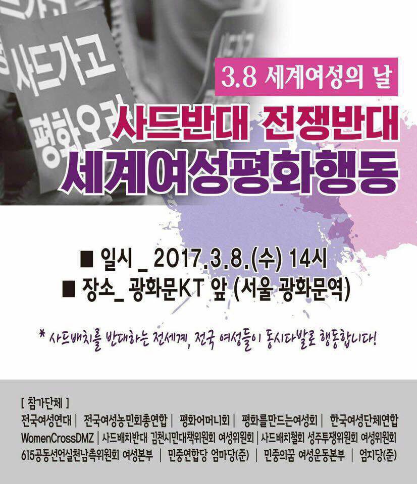 오후2:00 3.8세계여성의 날 세계여성평화행동/사드반대 전쟁반대/광화문KT앞