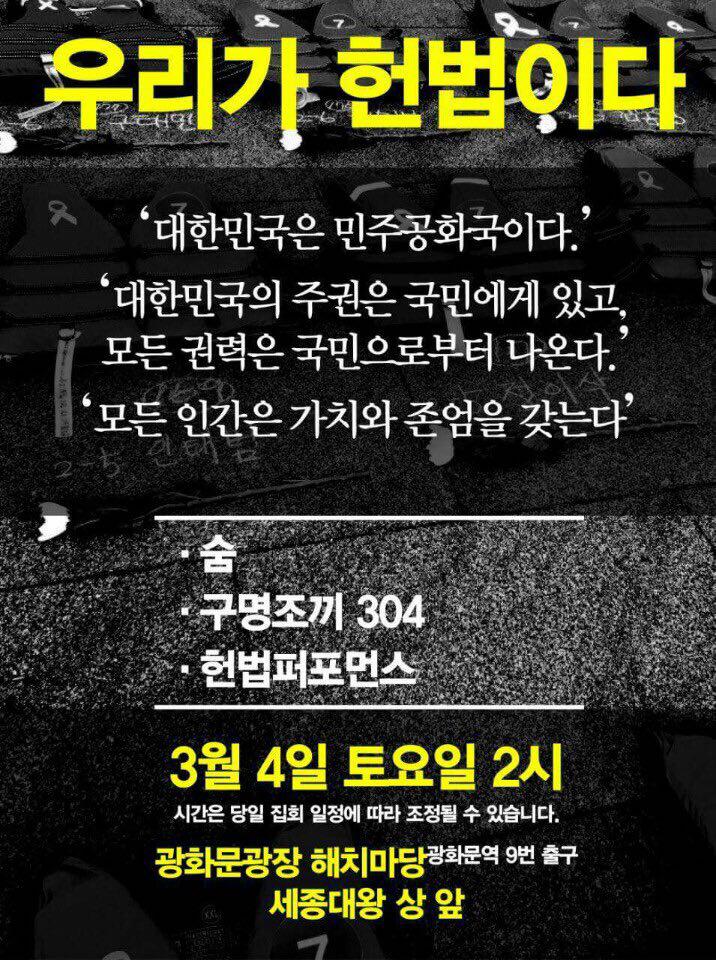 오후2:00 헌법퍼포먼스/우리가 헌법이다/광화문 해치마당