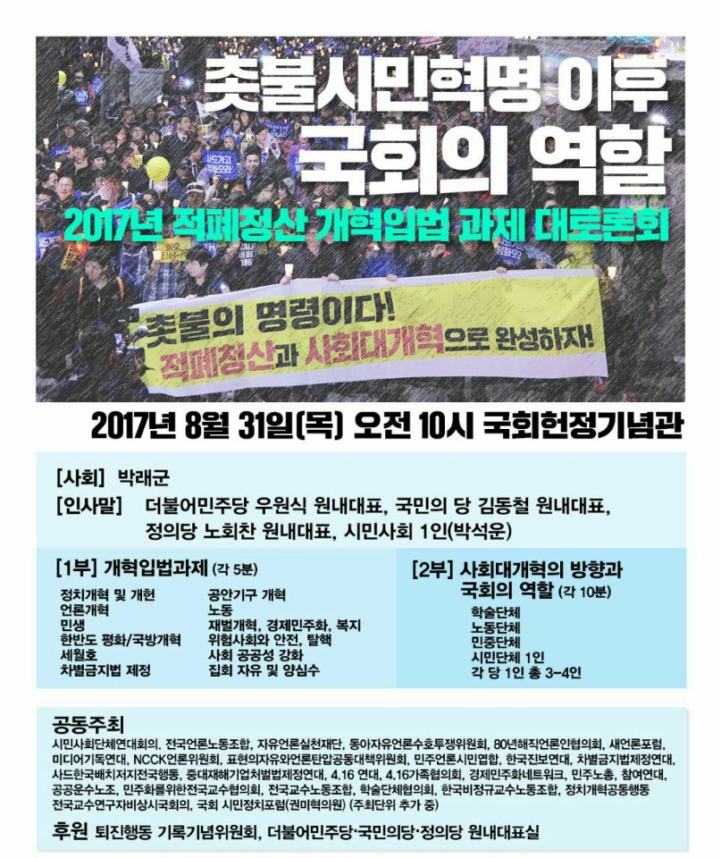 10:00 촛불혁명 이후 국회의 역할/ 국회 헌정기념관