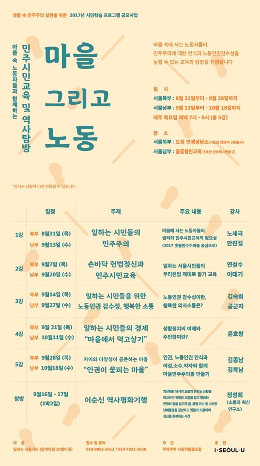 오후7:00 ~9:00 서울북부민주시민교육 제1강/"일하는 시민들의 민주주의"(노세극.안진걸)/도봉 민생상담소(쌍문역 3번출구)
