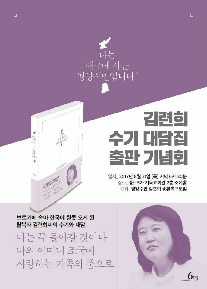 오후6:30 평양주민 김련희 수기 대담집 출판기념회/기독교회관 2층 조에홀