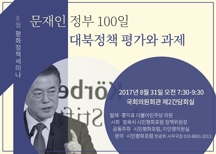 7:30~9:30 문재인 정부 100일 대북정책 평가와 과제/평화정책세미나/국회의원회관 제2간담회실