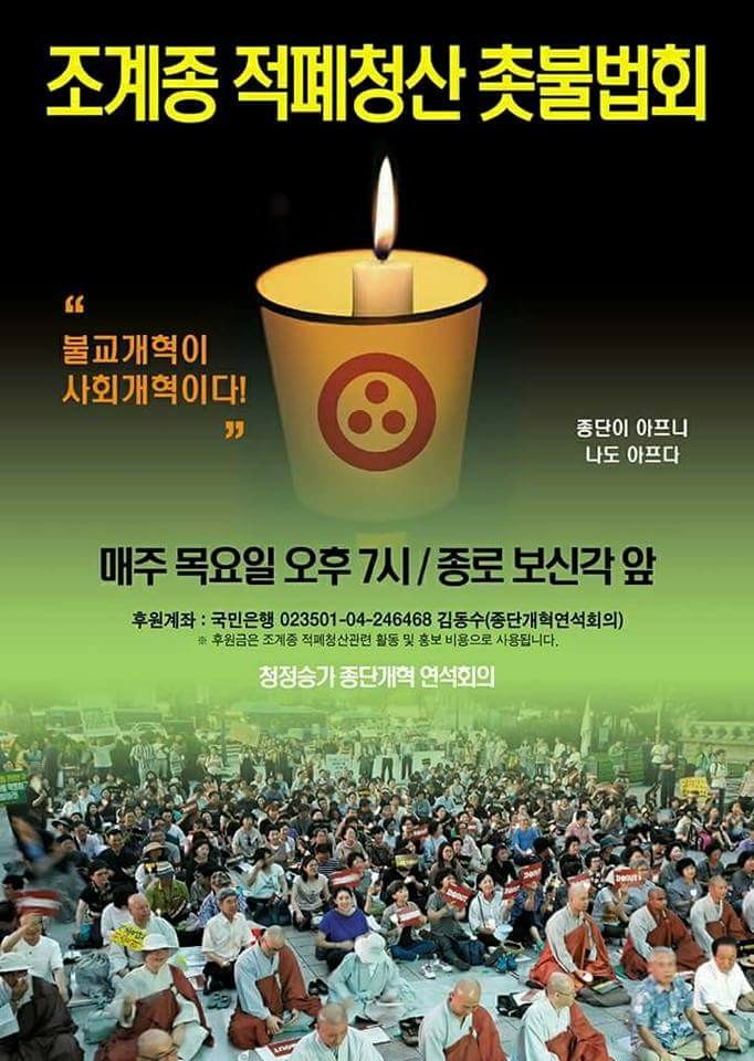 오후6:30 조계종 적폐청산 시민연대/ 조계종 적폐청산 5차 촛불집회 및 행진 /보신각 앞