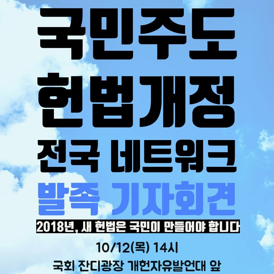오후2:00~3:00 국민주도헌법개정전국네트워크 발족 기자회견과 국민개헌자유발언대 진행/국회 잔디광장