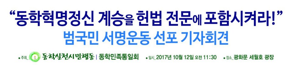 11:30 동학실천시민행동 .동학민족통일회 기자회견/'동학농민혁명 정신 계승을 헌법전문에 포함 하라! 촉구/광화문 세월호광장