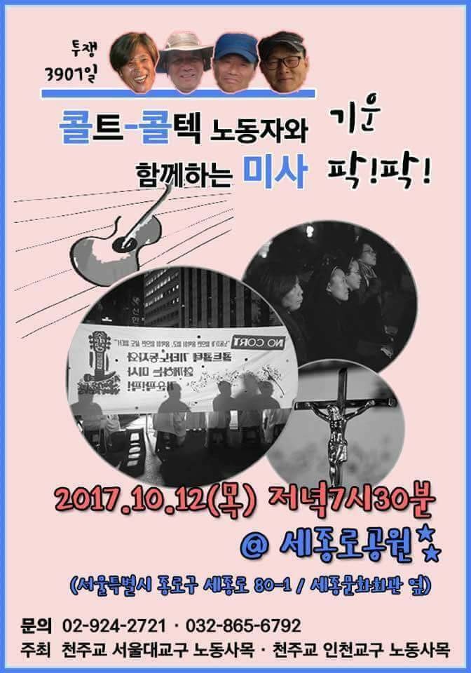 오후7:30 콜트콜텍 노동자와 함께하는 미사/세종로 공원