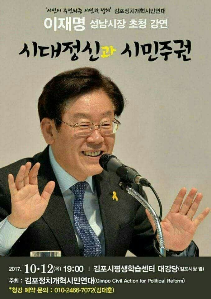 오후7:00 이재명 성남시장 초청 강연/시대정신과 시민주권/김포시평생학습센터