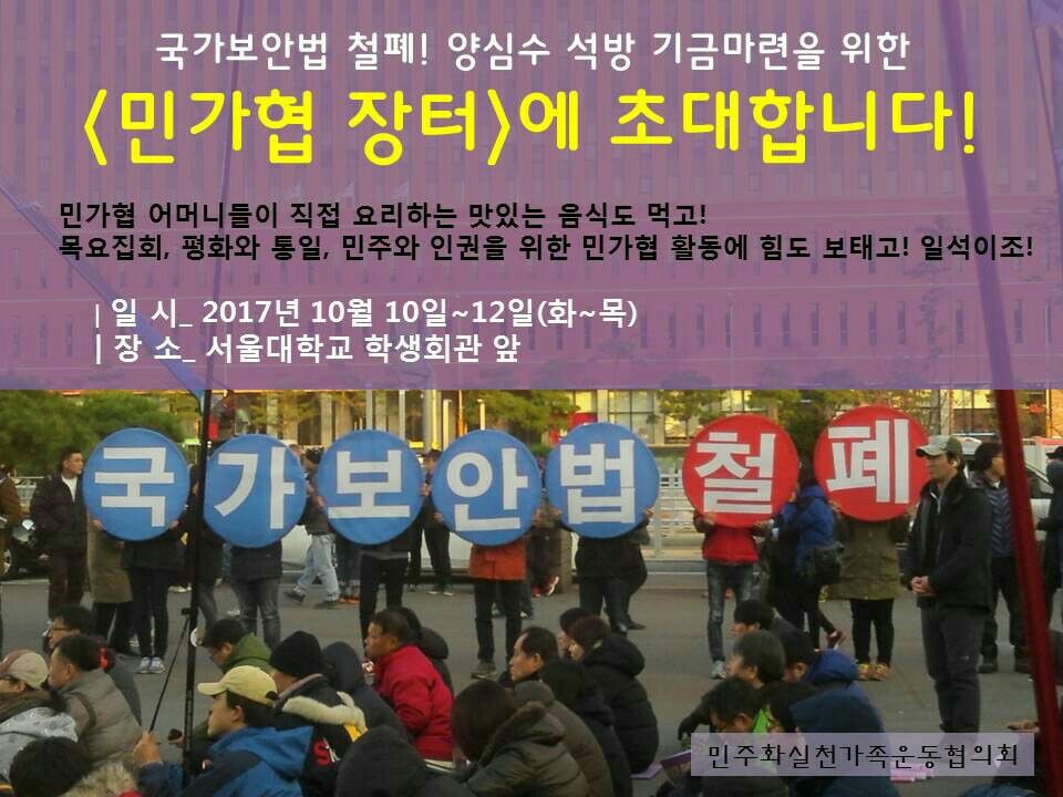 *민가협 장터 (10/10~10/12) 국가보안법 철폐. 양심수 석방 기금마련을 위한 민가협 장터/서울대 학생회관 앞
