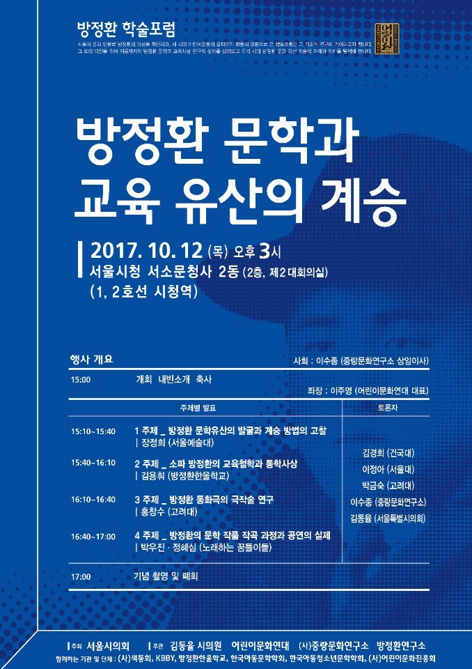 오후3:00 방정환 문학과 교육 유산의 계승/서울시 서소문청사 2층 대회의실