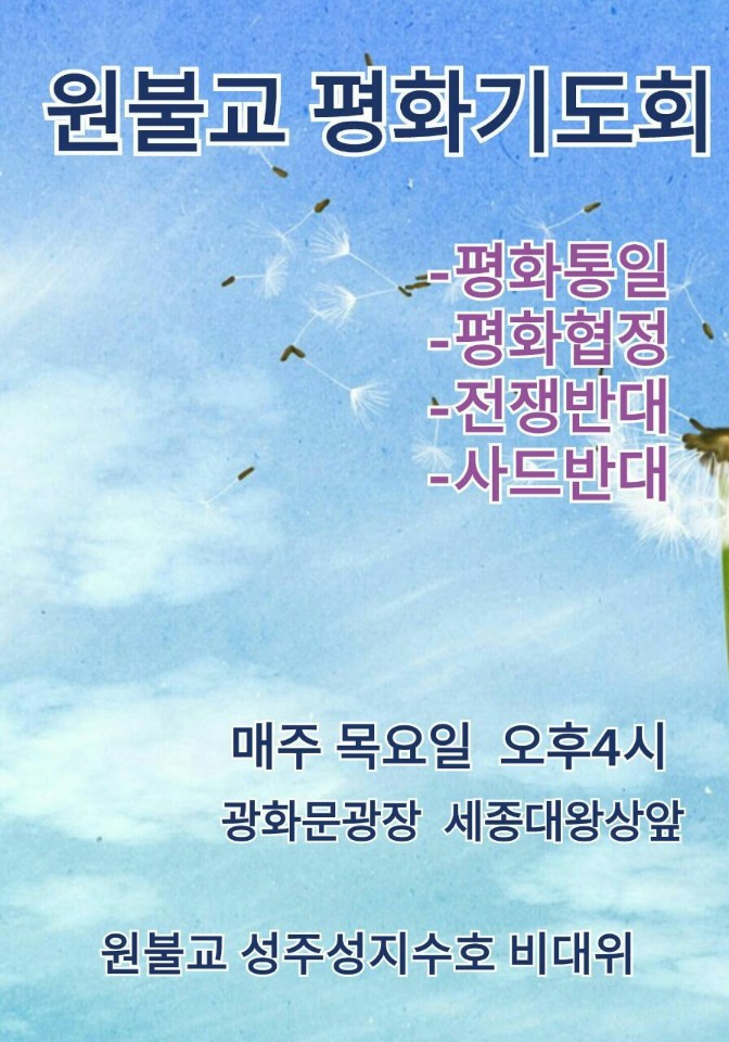 오후4:00 원물교 평화기도회/광화문광장 세종대왕상 앞