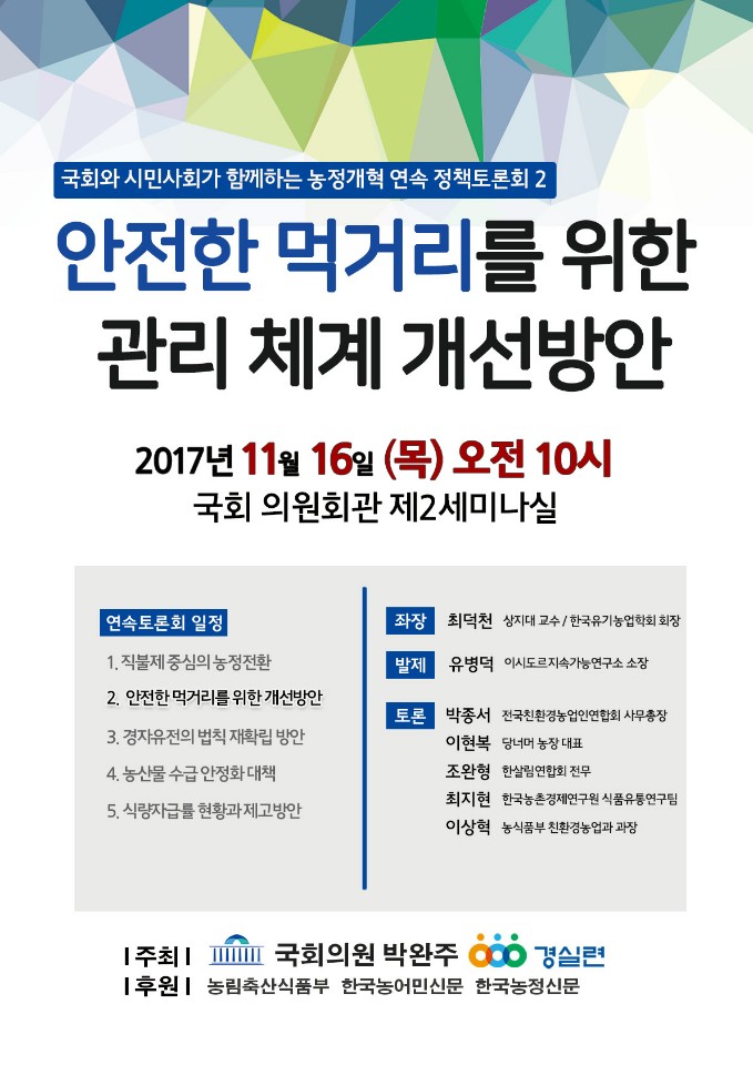 10:00 안전한 먹거리를 위한 관리 체계 개선방안/국회의원회관 제2세미나실