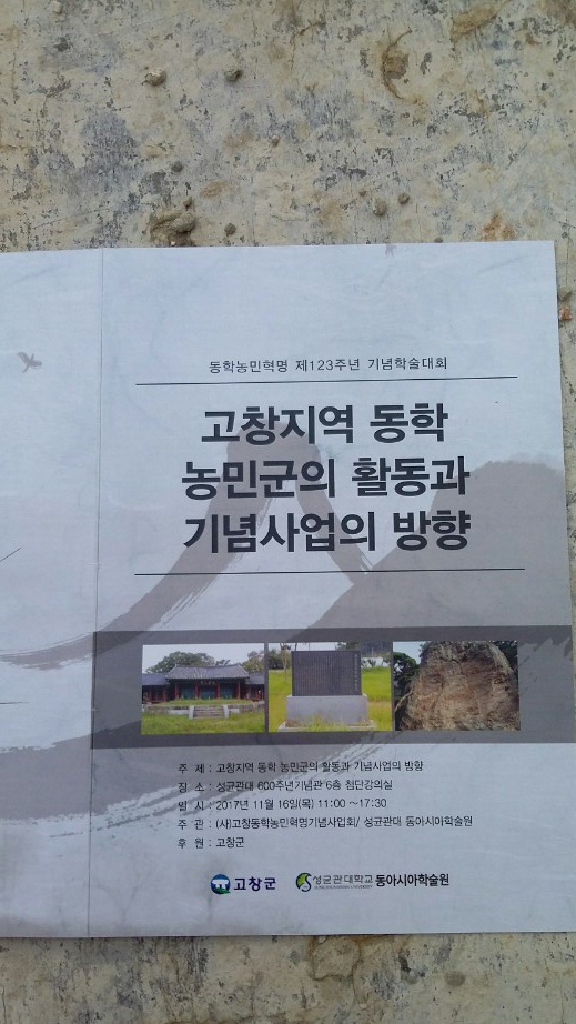11:00~오후5:30 고창지역 동학 농민군의 활동과 기념사업의 방향에 대해 학술대회/성균관대 600주년 기념관 6층 최첨단강의실
