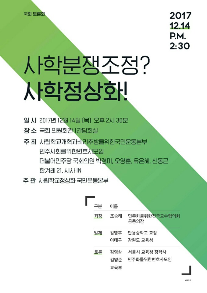 오후2:00 사교육걱정없는세상/공교육 정상화를 위한 대입제도 및 대학체제 개선안 제시 토론회/사교육걱정없는세상 대회의실