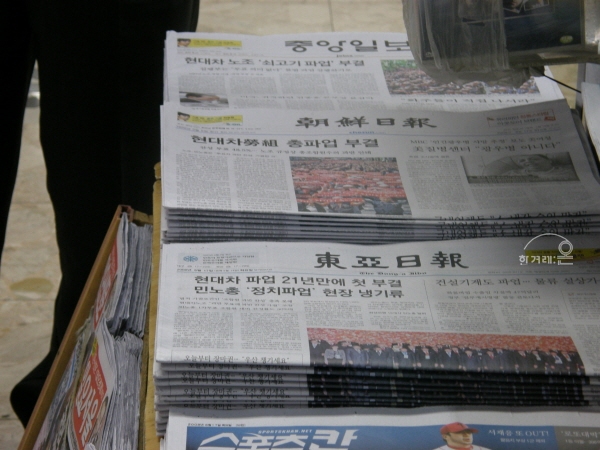 그런 데서 나온 생각인지는 몰라도, 주주총회에서 신문의 편집 방향에 대한 의견이 더러 제기되는 것을 보았다. 바로 얼마 전 주주통신원 발대식 때에도 비슷한 제안 발언이 나왔던 것 같다. 한겨레가 여타 신문들과는 좀 다른 스타일임의 반증이다. 나도 요즘 신문의 편집 추세로 보아 섹션 면을 네 개면 정도로 해 요일 별로 현대인의 관심도가 높은 기사를 다뤄 보면 어떨까 생각한다.
