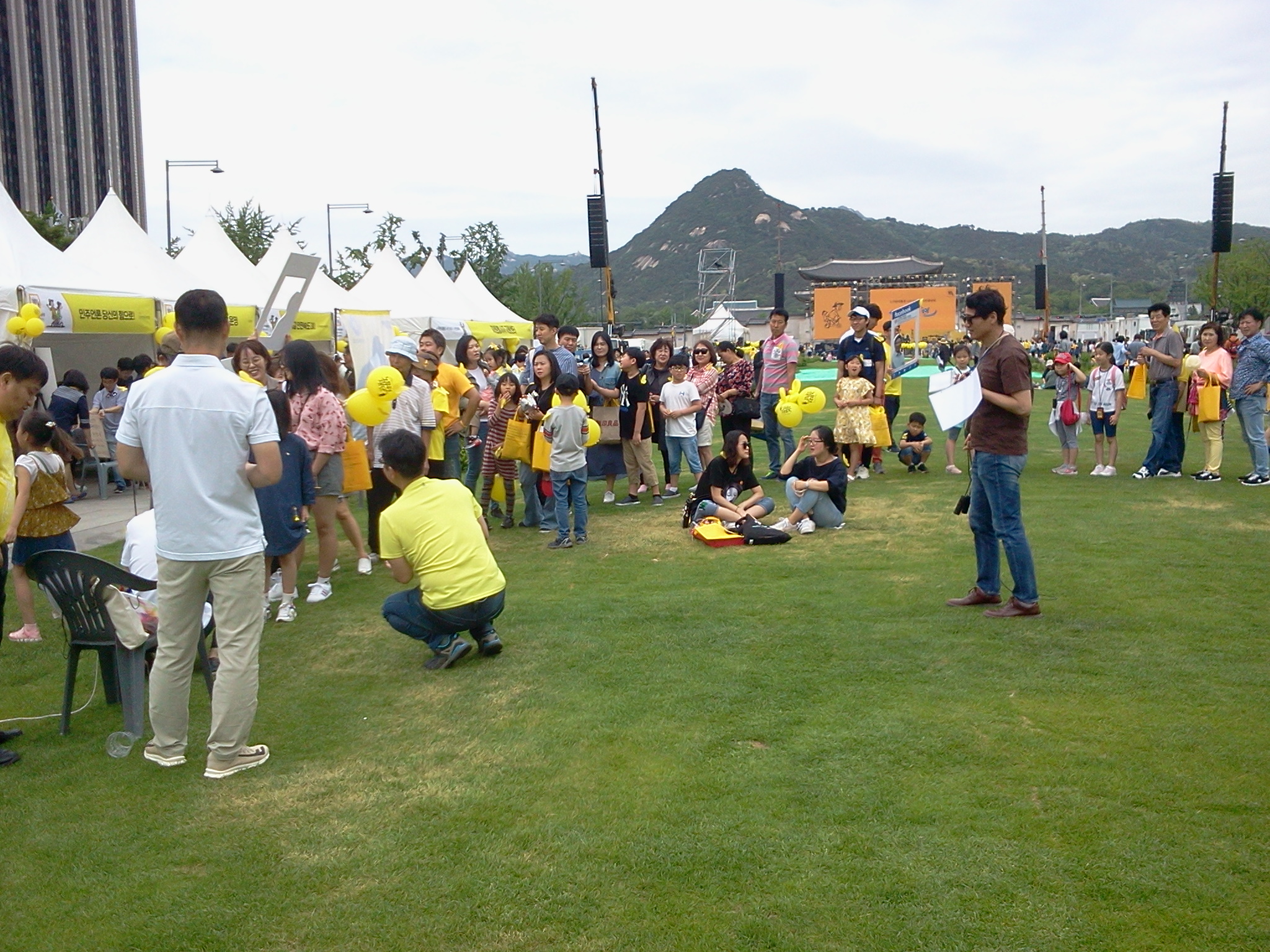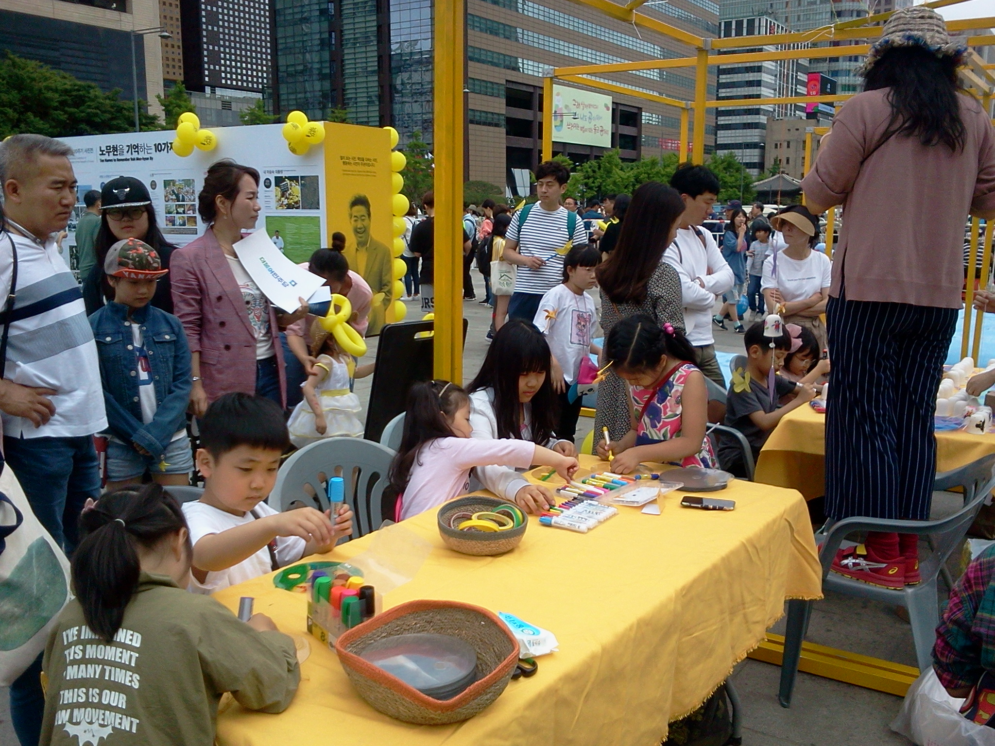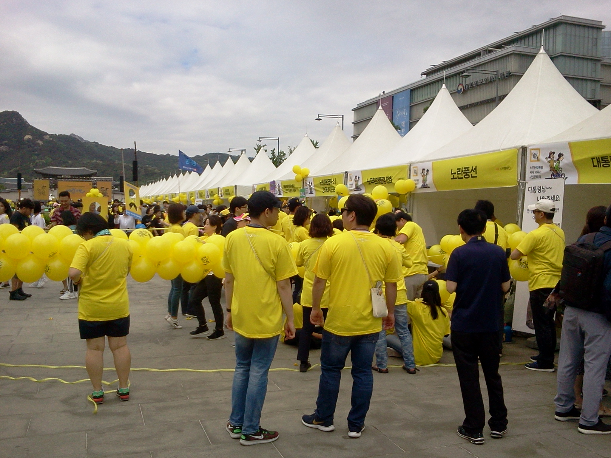 지난 18일 오전 11시 광화문 북쪽 광장에서 노무현재단 주최, 더블어민주당 주관, 정의당 후원 '노무현대통령 서거 10주기 시민 문화제'가 열렸다. 광화문 광장에 노랑 풍선으로 수놓고 있다. 각 부스마다 돌며 체험할 수 있다.