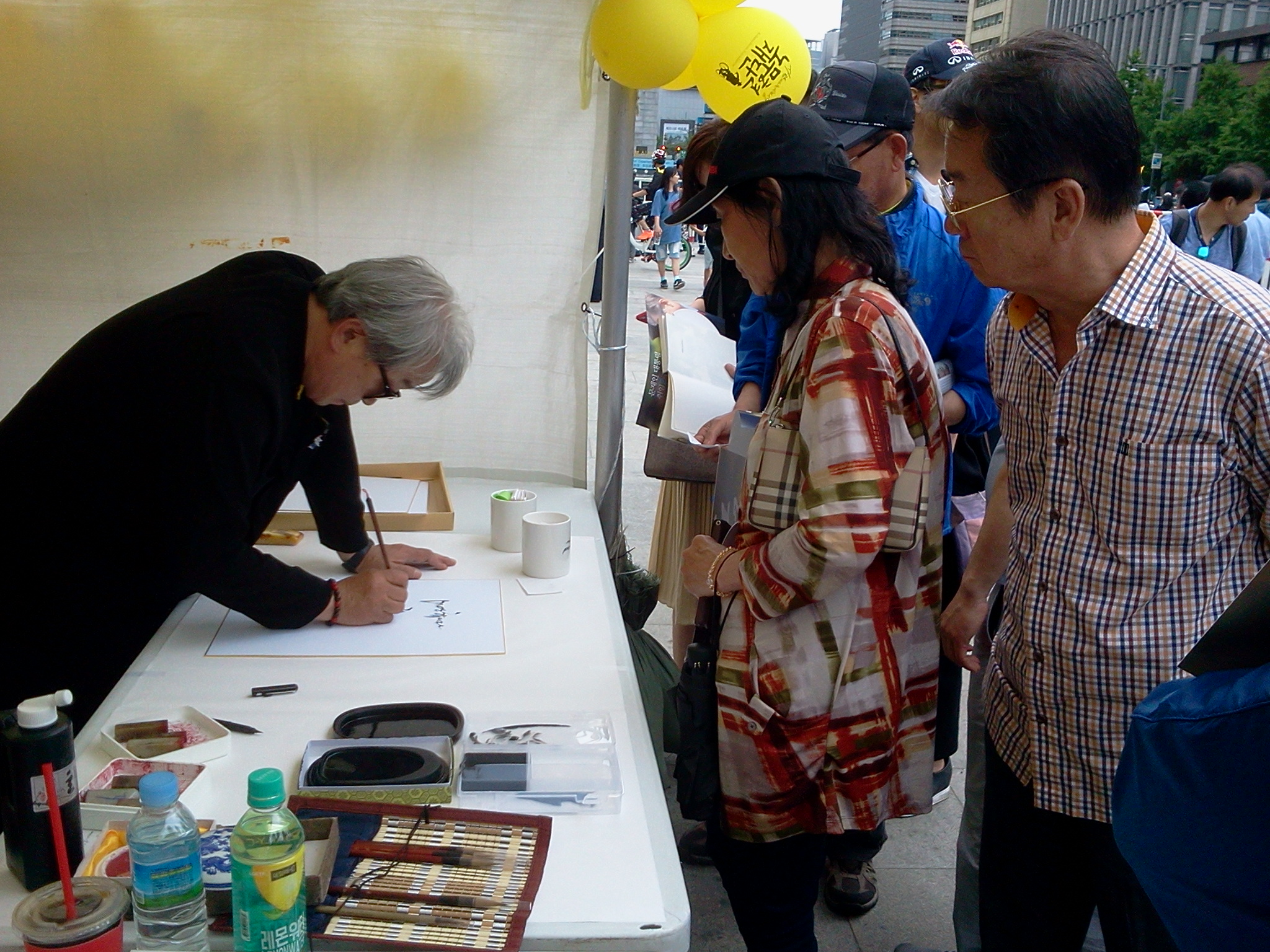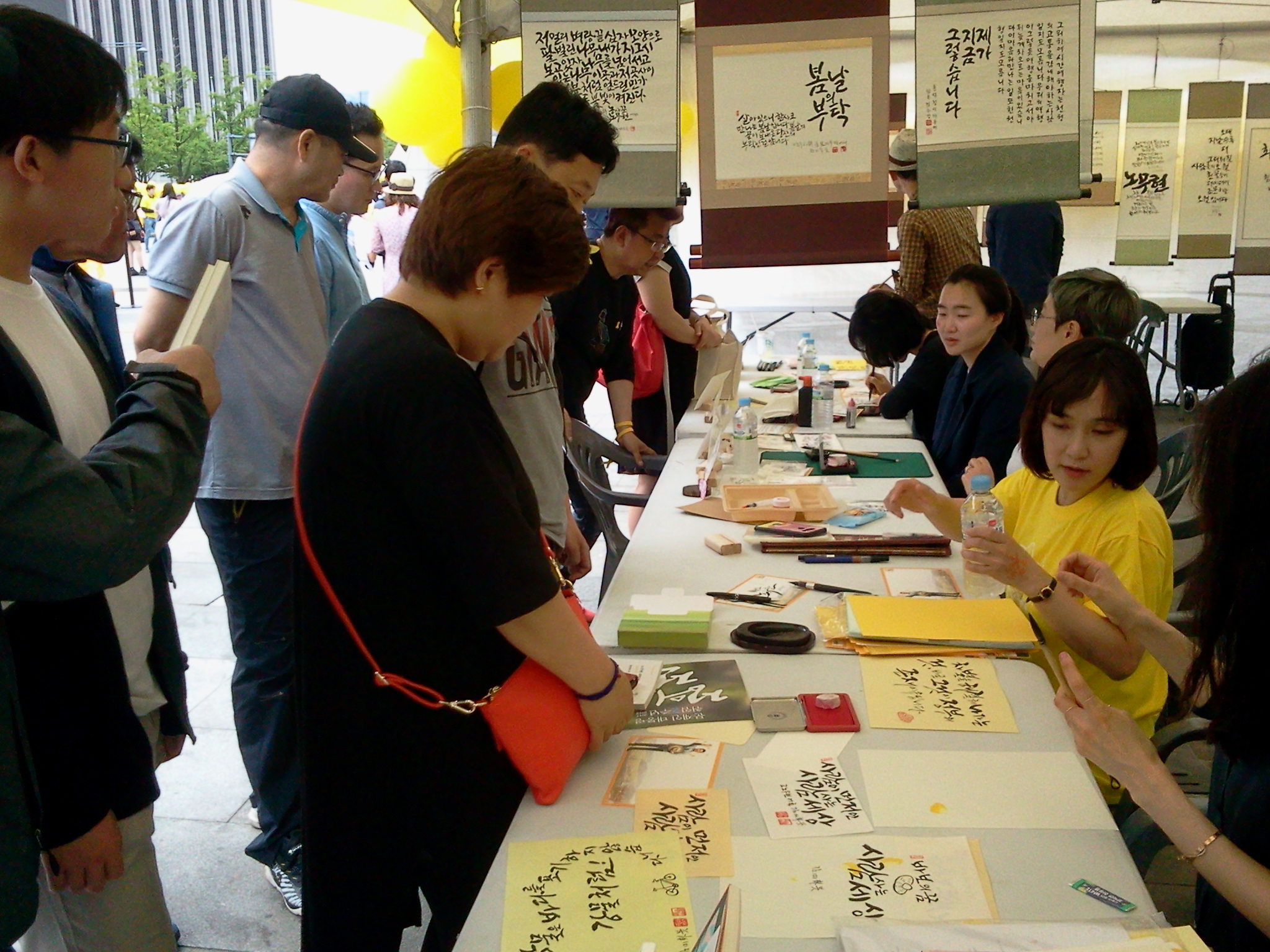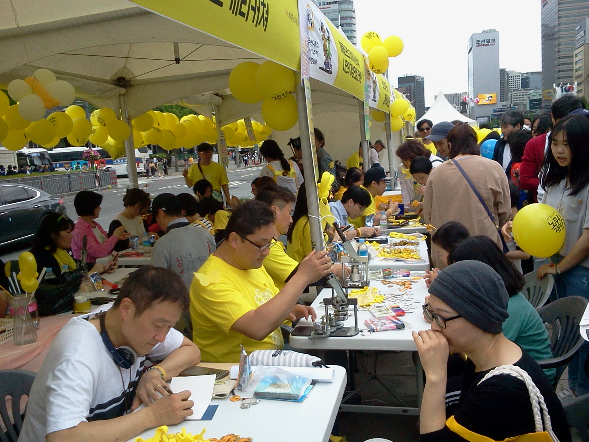 지난 18일 오전 11시 광화문 북쪽 광장에서 노무현재단 주최, 더블어민주당 주관, 정의당 후원 '노무현대통령 서거 10주기 시민 문화제'가 열렸다. 광화문 광장에 노랑 풍선으로 수놓고 있다. 각 부스마다 돌며 체험할 수 있다.