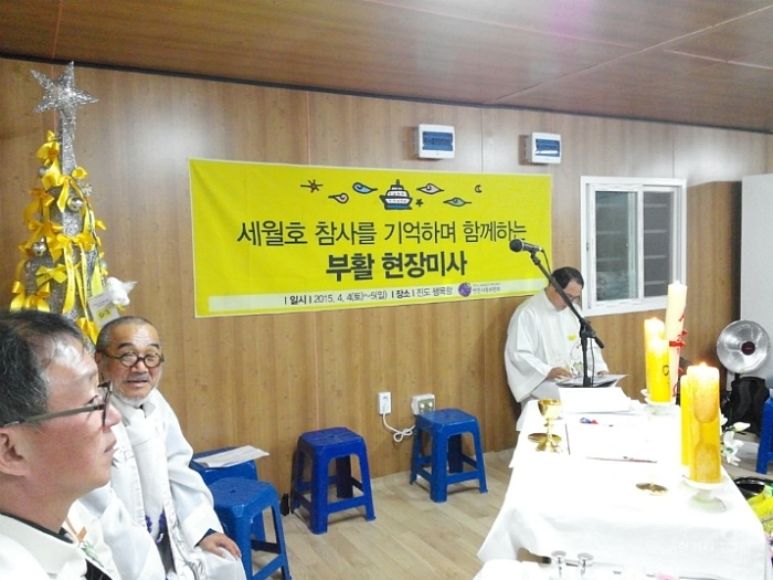 지난 4월 5일 서울대교구 사회사목국 빈민사목위원회에서 세월호 참사를 기억하며 부활전야미사를 진도팽목항에서 진행했다. 90명 가까운 서울 신자들이 4월 4일 밤에 팽목항에 도착해 4월 5일 미사를 드렸다.